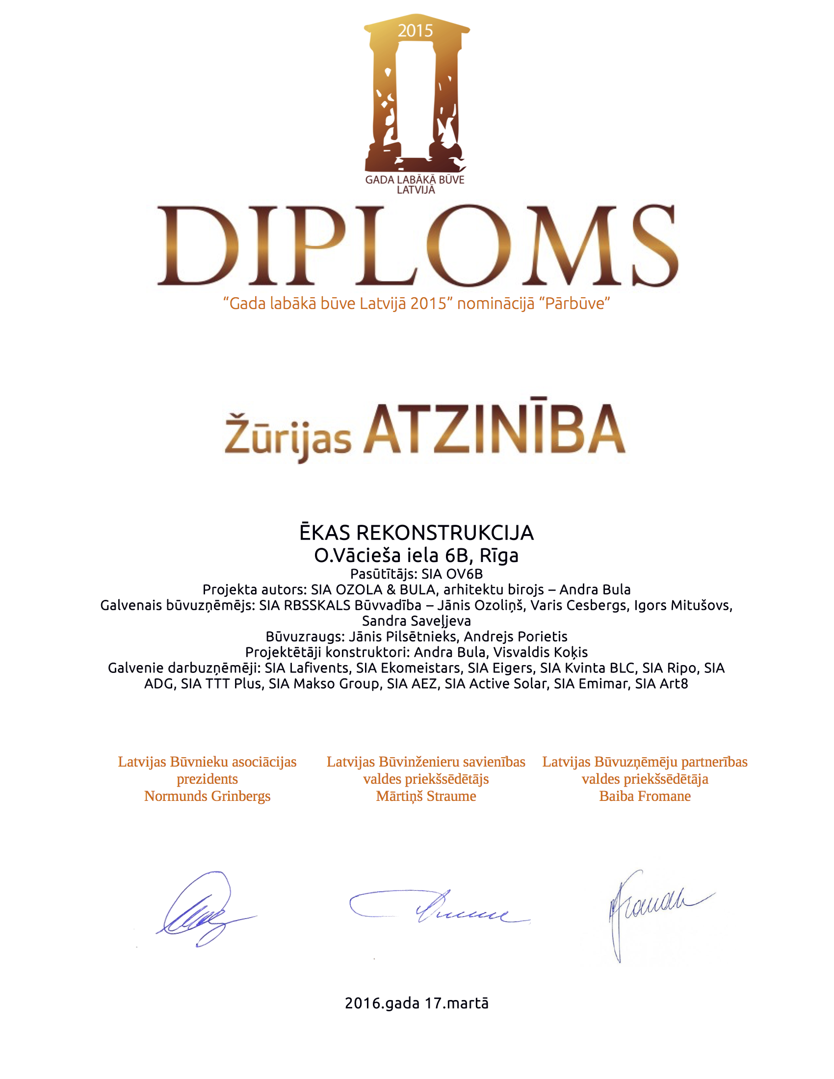Gada labākā būve Latvijā 2015 nominācijā "Pārbūve".